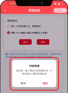 注意:在「票務設置」選項內也可選擇合適的車票類別