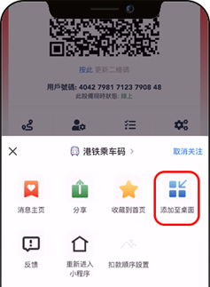 點擊「港鐵乘車碼」進入服務頁面
